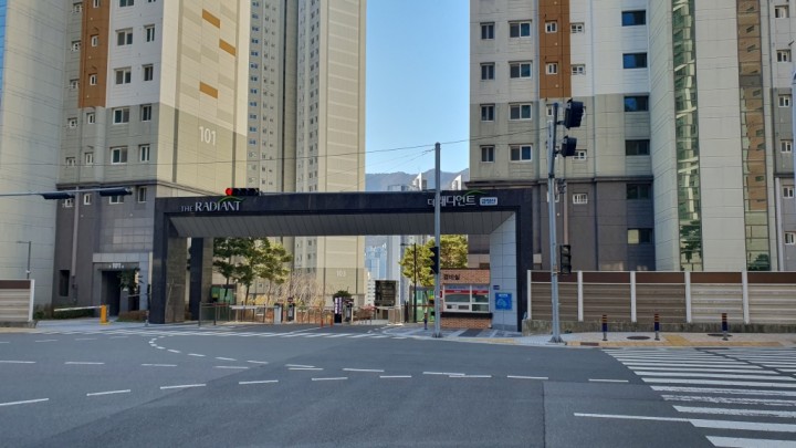 차분하고 깔끔한 톤의 컬러로 외벽, 신아파트다운 깨끗하고 큰 흠이 없는 외관을 갖고 있습니다.